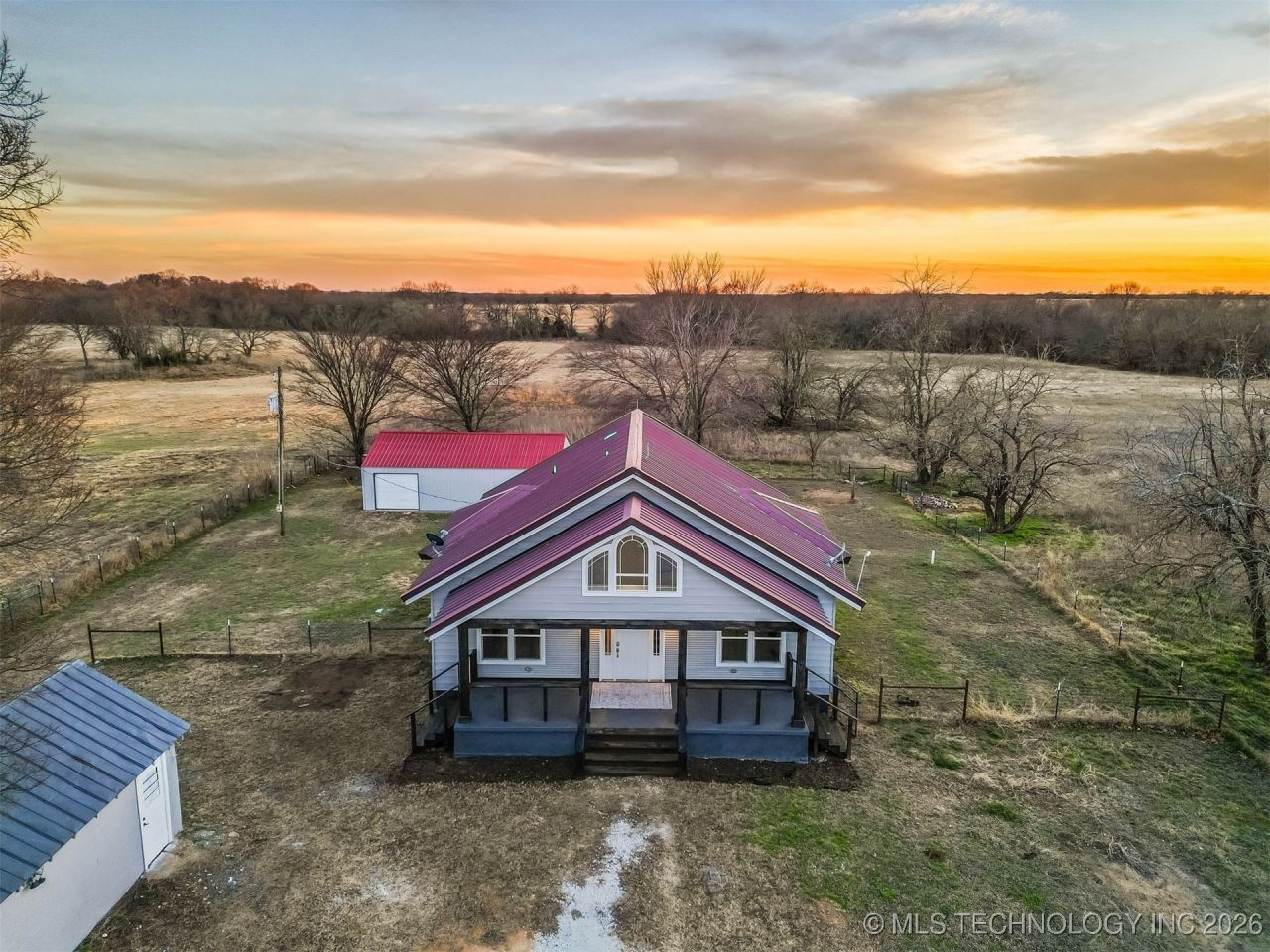 Originally built in 1921, this remarkable property has been COMPLETELY remodeled beginning in 2020! This gorgeous home now boasts a second story with 2BR & 2BA all with modern luxury and the original old farmhouse charm. The Kitchen and the Butler's Pantry have an abundance of windows offering 180 degrees of panoramic views allowing you to watch those amazing sunrises and sunsets while standing at the Kitchen sink! The kitchen is the heartbeat of this home. You'll LOVE the 8-burner gas stove and double ovens. The 12' x 4' island is made from a single slab of marble and is great for prepping meals, working with kids on their homework as well as serving as a dining table for up to 20 family members and guests. The base of the island is all storage space. The built-in buffet also doubles as a work desk or sewing station. Meal cleanup is a breeze as it can be divided between the two full-size kitchen sinks and 2 standard size dishwashers. The Butler's Pantry offers a prep sink, beverage refrigerator, walk-in pantry and a utility closet. Never run out of hot water with the 2 tankless water heaters! This home also boasts two full-size washer and dryer hook-ups - one set downstairs and one upstairs. The upstairs W-D, located in the primary bathroom, are included. The upstairs primary Bedroom has built-in dresser, walk-in closet and double-doors leading to your private balcony! Also upstairs is the second bedroom with great front windows, a private bath and a secret hide-a-way for the kids to enjoy. Relax and enjoy the sunset from the HUGE back deck which has access to ground level via steps or a slide. The abundance of windows from around this house provides great views of the 5.63 acres to the south and west that is fenced with barbed wire and reinforced with hog wire for the smaller livestock. There is a 24'x30' Garage with one 8' door and one 3' door with tons of space for storage with an additional storage space on the back for your lawn equipment.